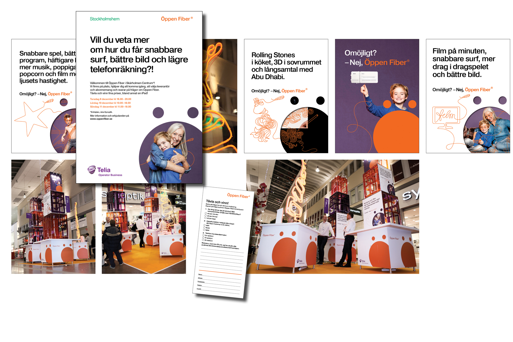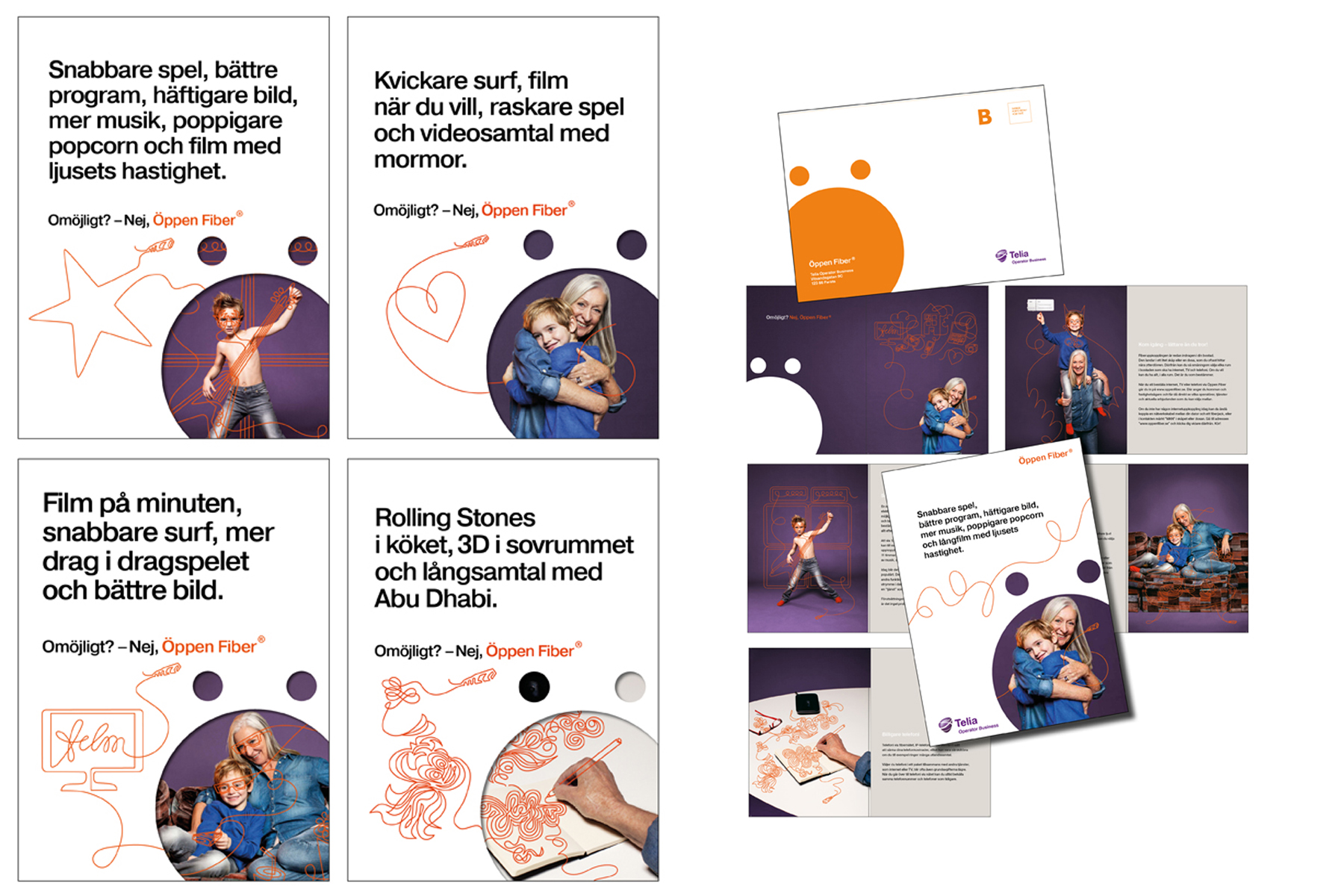 While the copy focuses on what you the user can achieve with a faster internet connection, the artwork uses the fiber cables themselves to depict a limitless creative flow. This is relevant for next generation users who, with a bit of luck and a lot of fiber, will be spared ‘loading… please wait’ and able to take air guitar to the next level.